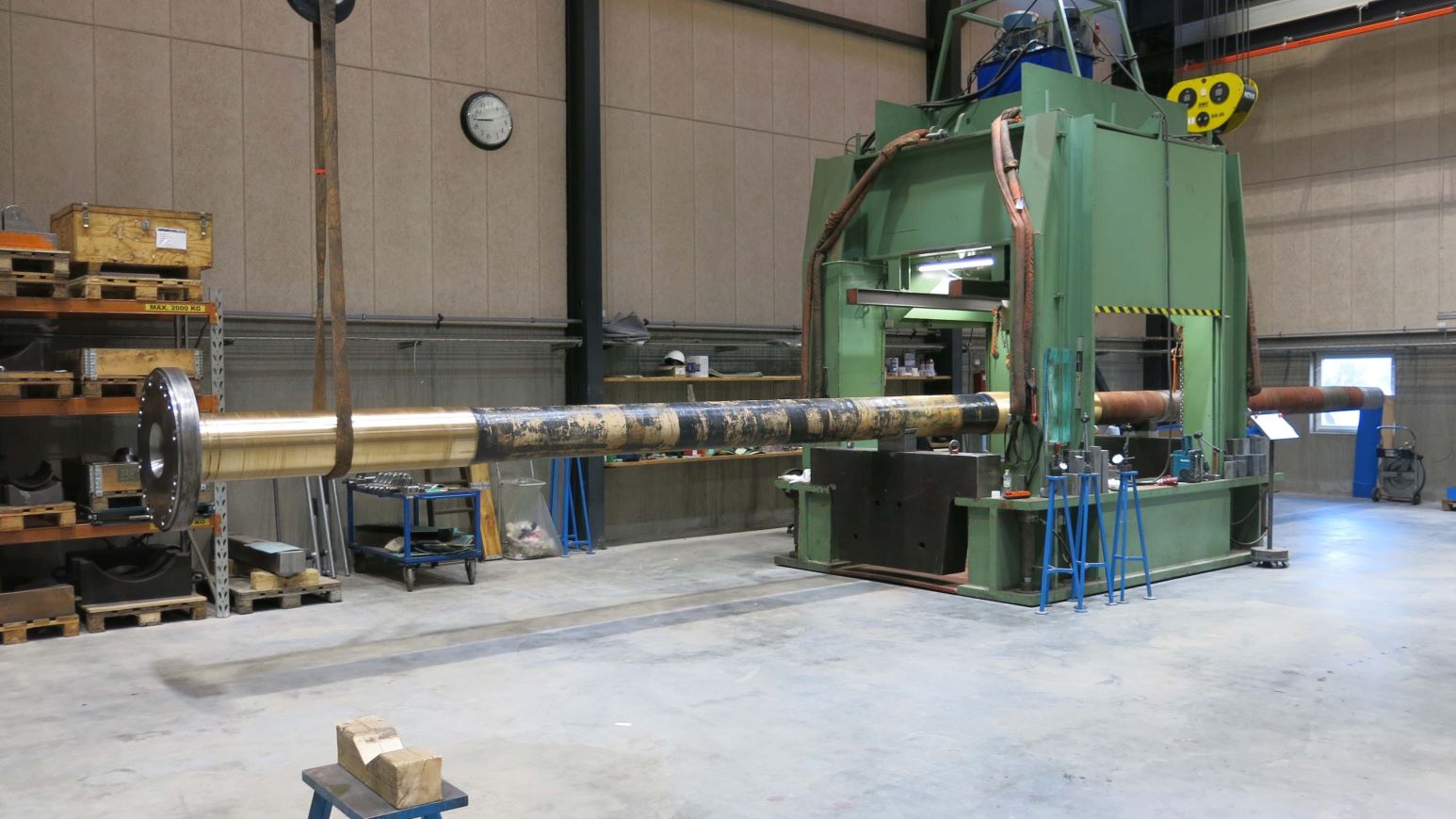 MarineShaft recently repaired a ship propeller shaft (Ø539 x 17529mm) with damages to the piston surface. Replacement of the yoke was also required.