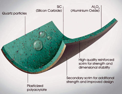 Gallium is a genuine safety flooring. It provides excellent slip resistance due to aggregates of silicon carbide, aluminium trioxide and quartz scattered through the wear layer.