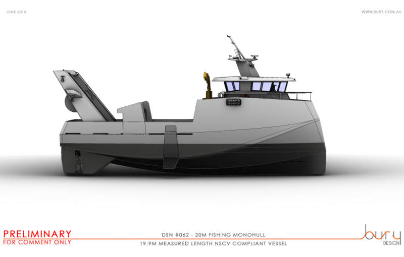 Leading Australian boat designer Paul Bury has released concept drawings for a 20m fishing boat that can be configured to efficiently work different types of fishing gear. The design would be the largest Australian working vessel under a measured length of 20m.