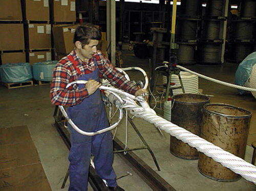 In addition to these types of synthetic wire ropes, we have also been producing steel wire ropes. Our range comprises the mooring ropes, ramp wires, crane wires (four-strand and multi strand), stainless steel and an anti-magnetic wire rope up to 78 mm diameter. We can produce wire ropes with a weight up to more than 30 tons. Additionally we keep big stock for short term supplies and we offer a wide range of end fittings.