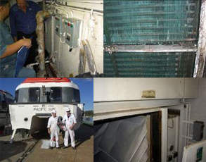 Our range of products and services for ship deck engineering includes AHU refurbishment, heat-exchanger coil replacement, ventilation / exhaust systems, ducting / trunking repairs, fire dampers, air balancing and internal duct cleaning.
