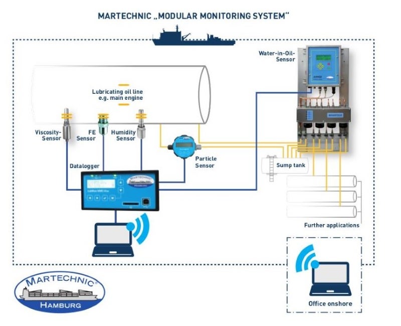 Martechnic has developed a Modular Monitoring System, which encompasses various sensors (viscosity, particle, humidity, FE and water-in-oil sensors) and due to its modular design can be installed in accordance with individual customer-specific application needs.