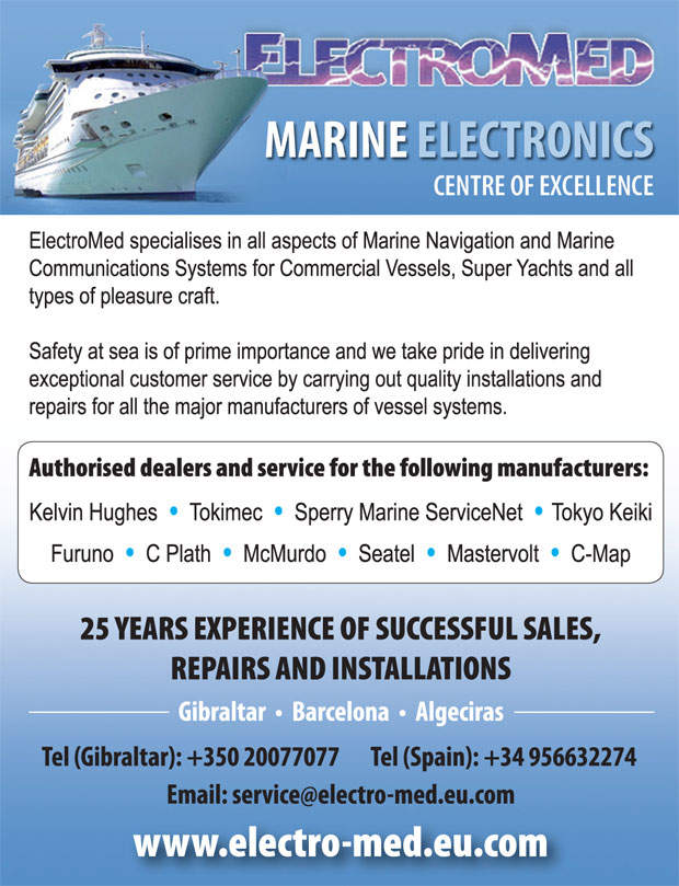 Electromed is a small company specialising in the sales, installation and repair of marine navigation and communication equipment. We have been servicing shipping in Spain, Gibraltar, Morocco and beyond for the past 30 years and have a vast history of service experience to draw upon.