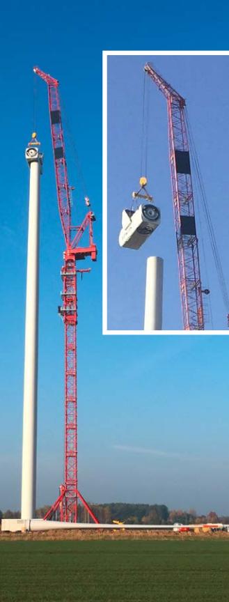 The new Krøll K1500L has a capacity of 125t up to a radius of 12.5m and can construct wind turbines of the 5MW class to a height of 170m. In the process the crane operates very close to the tower and in a very small turning circle, as is typical for luffing jibs. In this case, Krøll has gone a step further and designed the K1500L in such a way that allows for the positioning of a very steep jib in order to reach the necessary lifting height.