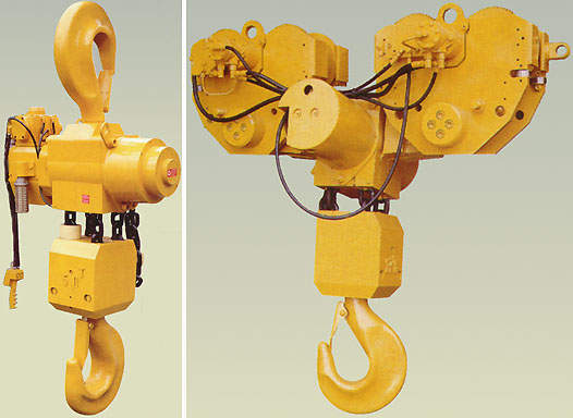 The 50t air chain hoist with motorised trolley is provided with test certificate covering construction and performance.
