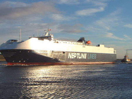 The Neptune Aegli was built by Astillero Barreras in Spain as hull No. 1594. The fast vehicle ferry is owned by the Aegl