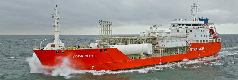 - Coral Sticho and Coral Star of Anthony Veder: the dual-fuel propulsion ships were provided with two 100m³ systems
