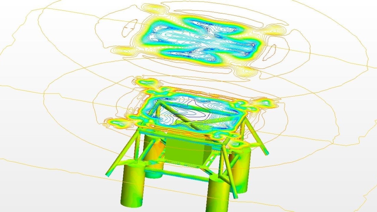 CFD aerodynamic methodologies are also applied in the helideck design when analysing the effects of wind turbulence or calculating air flow instabilities due to superstructure or thermal flow from gas exhaust systems. These are critical factors to ensure safety in helicopter operations and landing.