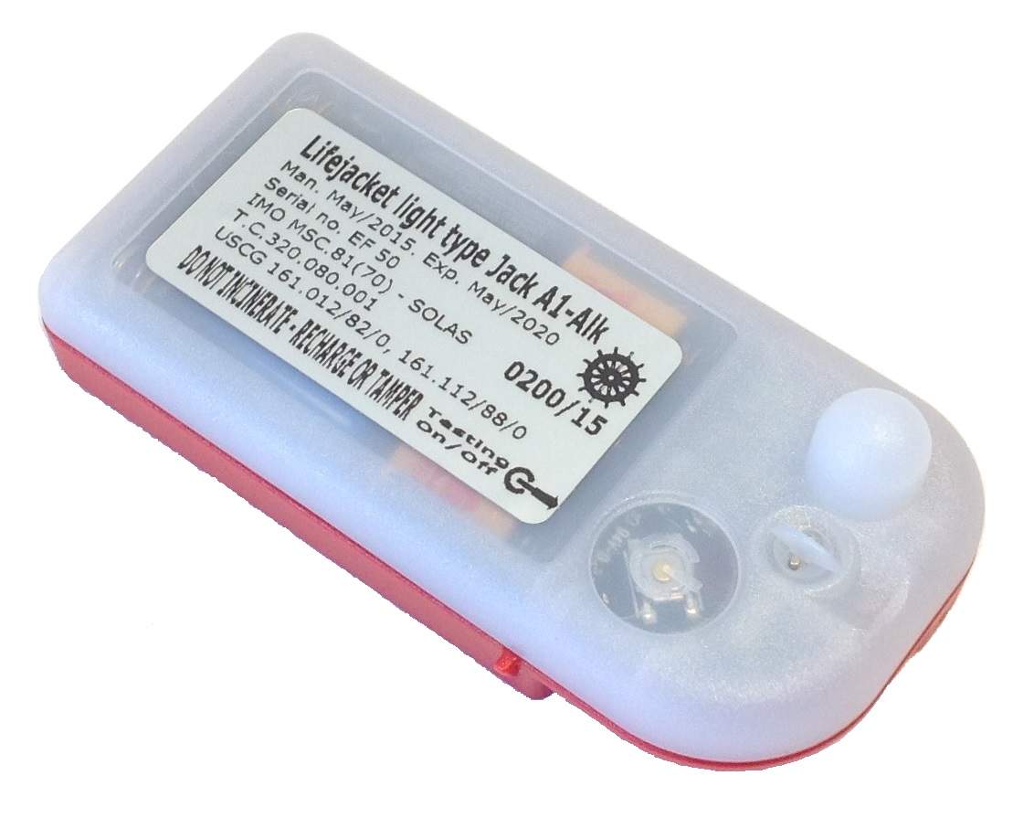 Lifejacket light type Jack A1-Alk is an automatic flashing high-performance SOLAS alkaline LED light.
