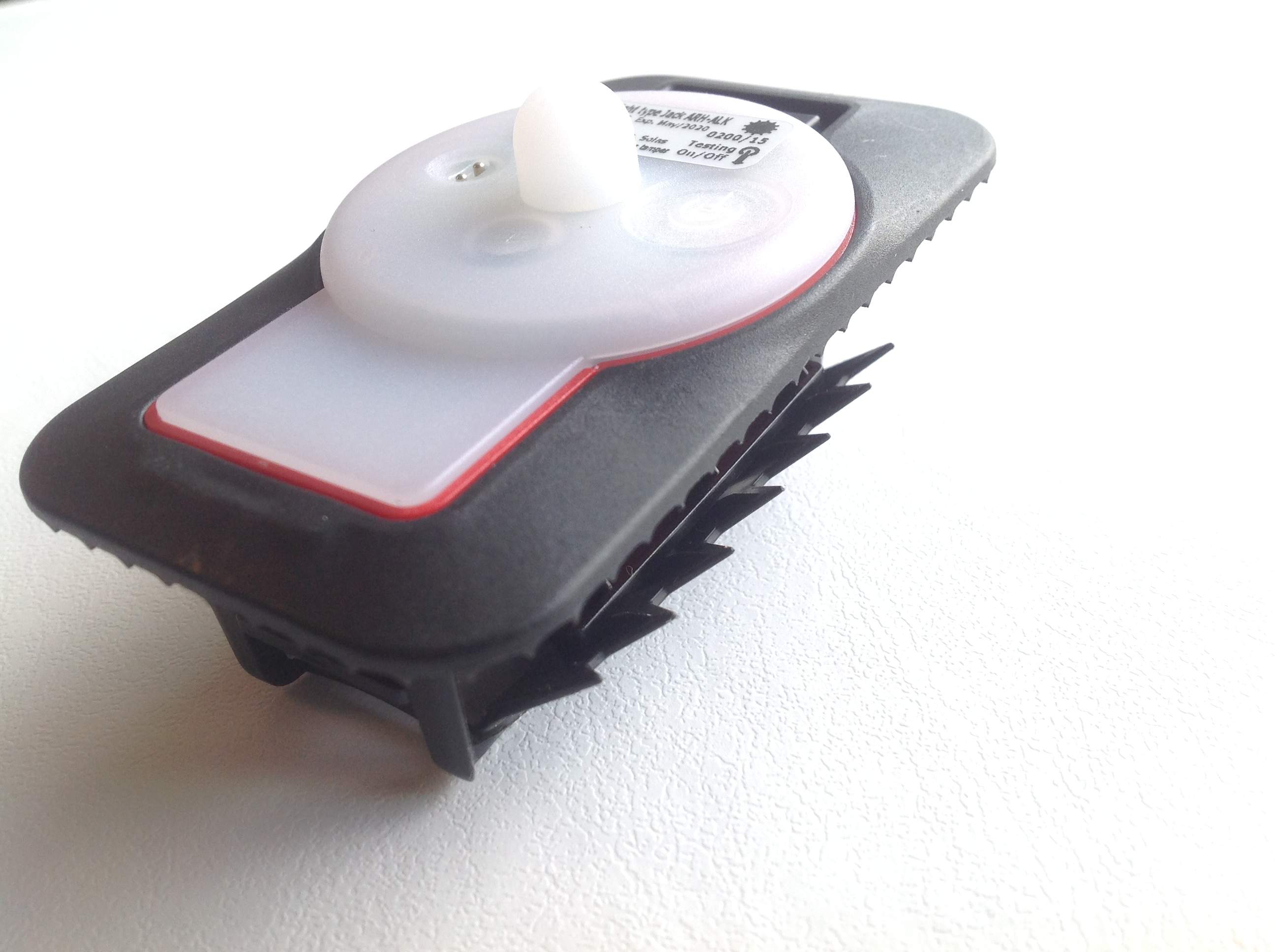 It is manually operated, with an internal constant light and an external flashing light. It is activated by moving the activation arm around the corner clockwise on the battery.