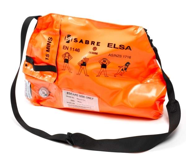 Emergency life support apparatus (ELSA). CE-marked in accordance with EN1146, MED (Shipswheel) approved. Available in 10 or 15 minute versions. Provided with a ten-year service interval.