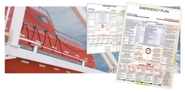 Emergency plans are printed in colour on high-quality posters in compliance with international shipping and offshore regulations.