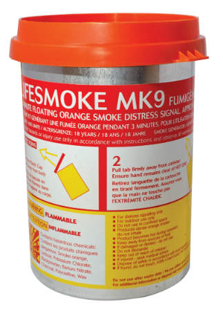 Also available in the range is the Lifesmoke MK9 for use in daylight. This signal emits a dense orange smoke for a minimum of 3min, which is used to indicate position and wind direction (a great aid for helicopter pilots) during a search and rescue operation. The Lifesmoke MK9 features a flat peel off top cap which allows for ease of stowage and packing.