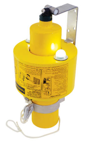The Pains Wessex Manoverboard MK9 (MOB MK9) is a self-activating smoke signal, with unique all-round lighting system designed for attachment to emergency life buoys. When released it indicates its position by emitting a dense orange smoke and two lithium battery powered lights. Safe to use on petrol or oil-covered water, the unit can be automatically or manually deployed from the stainless steel mounting bracket, and is ideal for use on ships or rigs.