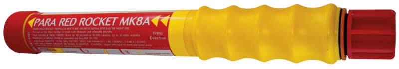 The Parachute Red Rocket MK8A is designed to attract attention at long range, firing a 30,000 candela red signal to a minimum altitude of 300m. Suspended beneath a parachute the signal burns for 40s. The Parachute Red Rocket MK8A is designed for day or night time use, and is intended for use in an emergency afflicting either commercial or leisure vessels.