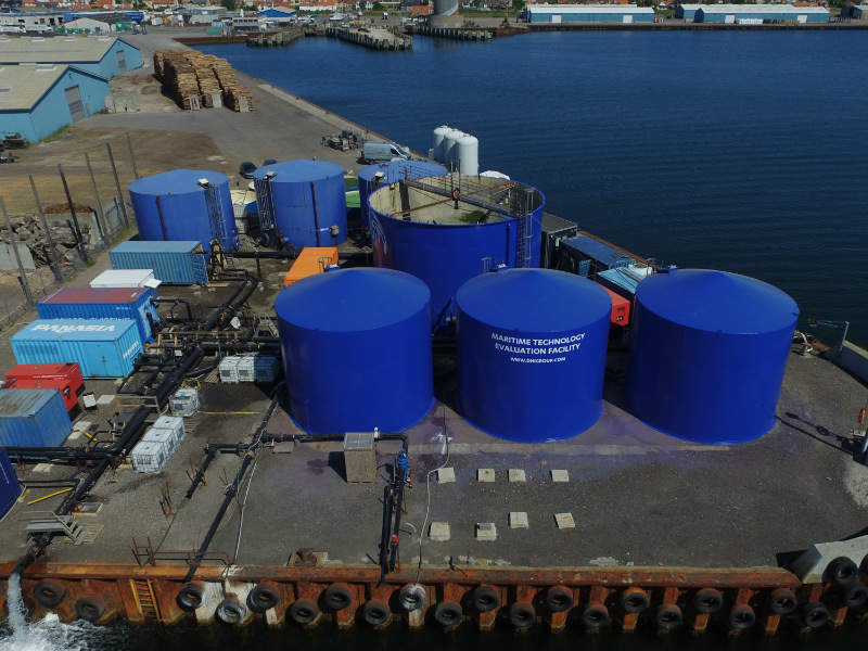 DHI’s land-based test facility in Hundested, Denmark, is highly flexible, and five BWMS can be connected to the test facility at the same time. The land-based test facility includes one source tank with a volume of 750m³ and six retention tanks, each with a volume of 250m³, that permit parallel testing of BWMS. The main pump at the test facility operates with a flow rate of 200m³/h to 600m³/h.