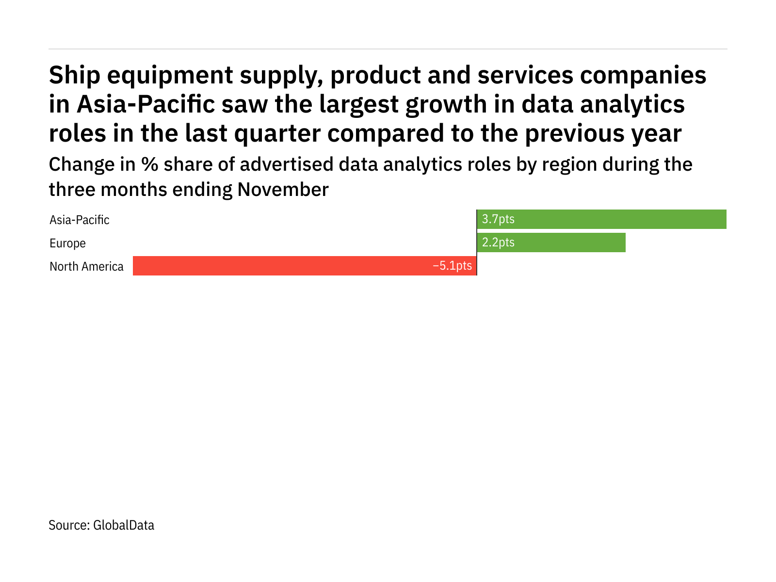 Asia-Pacific was the fastest growing region for data analytics hiring among ship industry companies in the three months ending November.