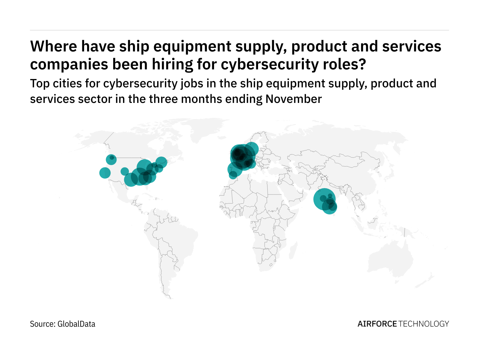 The top country for cybersecurity roles in the ship industry is the United States which saw 29.9 per cent of all roles in the three months ending November.