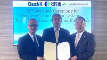 ClassNK has granted approval in principle (AiP) to Nihon Shipyard and Hankuk Carbon for their spray form insulation system designed for IMO Type B tanks intended for use with liquefied natural gas (LNG) and ammonia fuel.