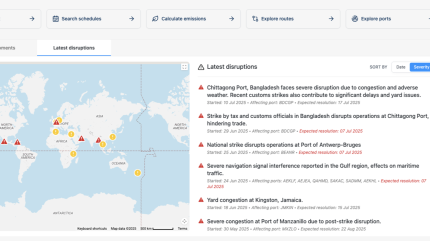 The feature includes a real-time intelligence service designed to inform companies of disruptions affecting shipping routes globally.