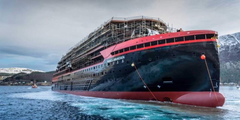 Hurtigruten has launched its new hybrid-powered expedition ship, MS Roald Amundsen, at the Kleven Yard in Ulsteinvik, Norway.