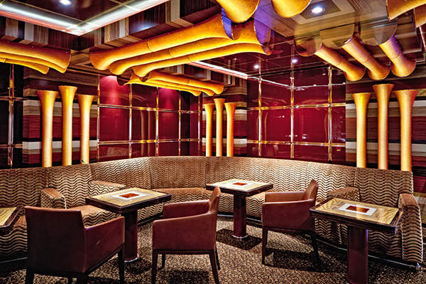 Fascinosa’s interior environments are inspired by film stars, exotic locations, memorable international celebrities and so on. Furnishings and interior decoration are based on silver, gold and purple colour themes.