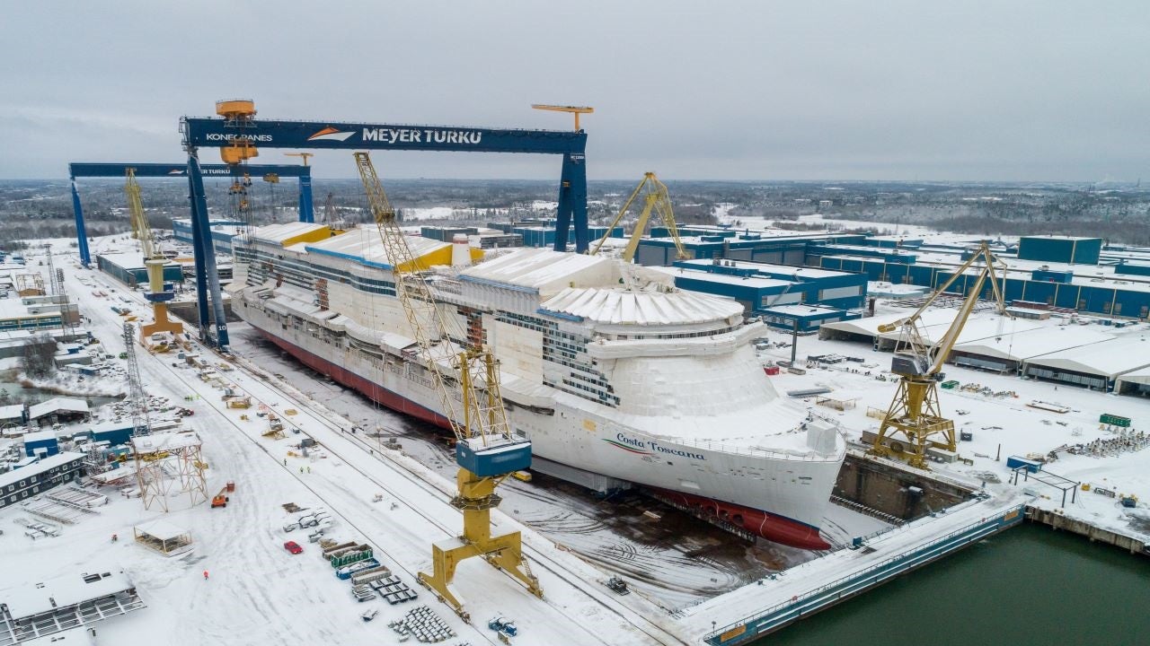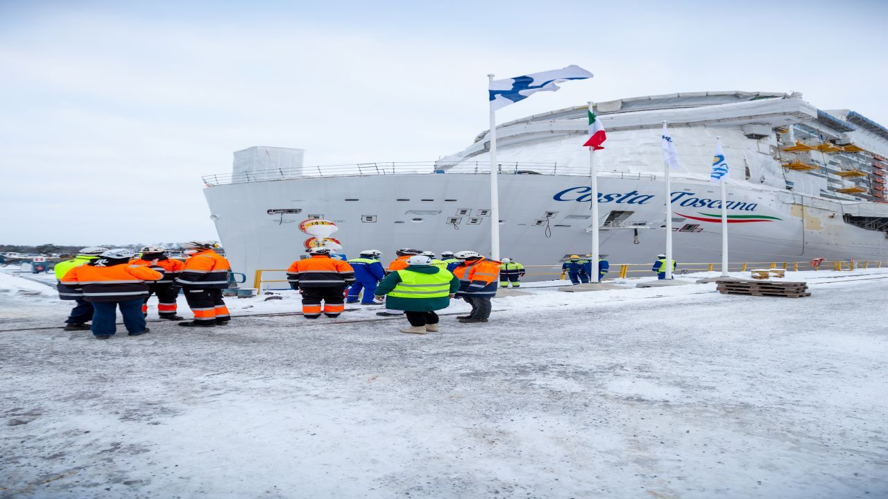 The first metal sheet cutting took place in July 2019 and its hull assembly began in February 2020. The float-out ceremony of the Costa Toscana was held at the Meyer shipyard in Turku, Finland, in January 2021.
