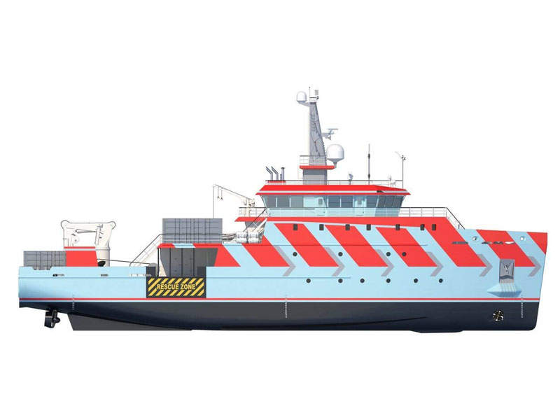 The vessel’s layout integrates a spacious aft deck providing multiple container stowage options. Its versatile superstructure offers space for stores, medical treatment, recovery and quarantine activities. The slipway of the vessel allows for the launch and recovery of an 8.5m-long rigid hull inflatable boat (RHIB) for fast and safe transfer of passengers to and from the vessel.