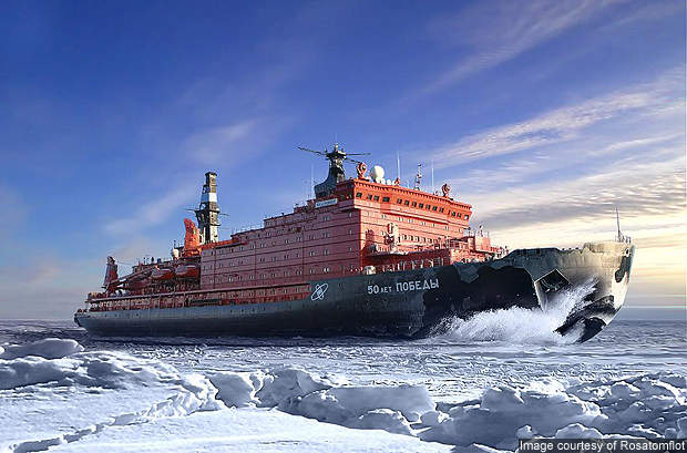 The 50 Years of Victory is the last vessel in the six-ship series of Arktika Class nuclear-powered icebreakers. Built by Baltic Shipyard and Admiralty Shipyard in St Petersburg, the ship is owned by the Russian Federation Government and managed by Rosatomflot.