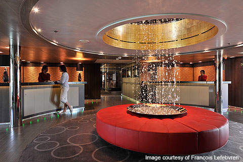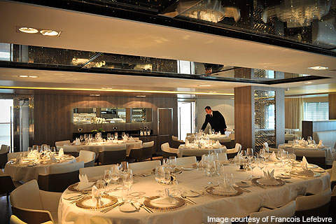Stateroom amenities and facilities include a queen-size bed or two single beds, a mini bar, a flat screen television with DVD/CD player, wireless internet access, an electronic safe, a desk with stationery, a dressing table with hair-dryer, French bath products, designer soap and toiletries, a power shower or bathtub and a separate toilet.