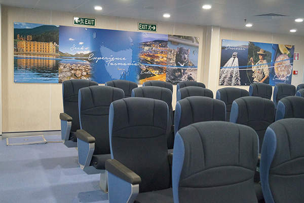 The vessel offers accommodation for 150 special personnel, with seating arrangements in the main and mid decks, and two VIP meeting rooms. Other facilities include vending machines, luggage storage facilities, toilets, a sick bay and an entertainment system with in-seat audio. There is also a large A60 workshop provided on the main deck.