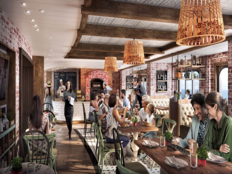 The onboard dining options include the Teppanyaki, serving oriental dishes cooked in traditional Japanese style. Giovanni’s Italian Kitchen and Wine Bar serves rustic Italian dishes, with the menu including options such as hand-tossed pizzas, charcuterie products, wines and limoncellos.