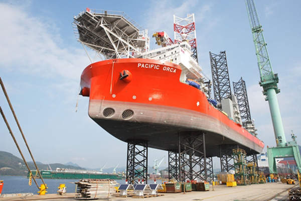 Pacific Orca was delivered in July 2012. She is built of Germanischer Lloyd class and will be utilised by the Danish energy company DONG Energy for turbine installation at an offshore wind farm.