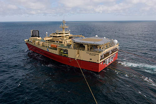 The vessel completed its first survey in May 2008 in the Norwegian-Danish Basin. In order to get high-resolution data, the vessel pulled along 14 streamers with a separation distance of 50m.