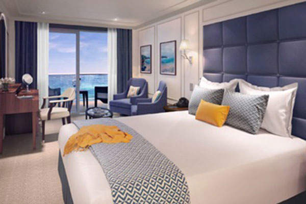 It will feature approximately 540 suites and cabins. The cabins will be spacious, look modern and will have a balcony each. The cabin types will include standard, deluxe, mid-ship suites, and larger suites. Approximately 15% of the cabins will be for single-occupancy.