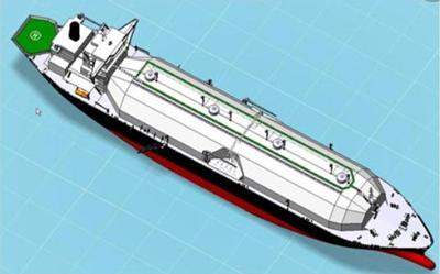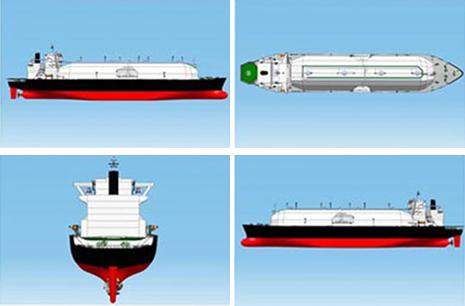Each of the vessel’s Moss-type spherical tanks will measure approximately 40m in diameter. The tanks will have a peapod-shaped continuous cover over them incorporated into the vessel’s hull, unlike the conventional liquefied natural gas (LNG) carriers where the upper half of the spherical tanks above the ship’s deck is covered by a semispherical dome and the lower half is supported by a cylindrical skirt structure.