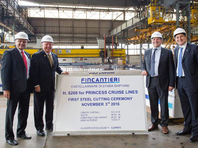 Construction of the 145,000t Sky Princess cruise ship began in November 2016 with the steel-cutting ceremony of the bow section. The ceremony was held at the Fincantieri shipyard in Castellammare di Stabia, Italy. The section was transported to the Monfalcone shipyard for final assembly.
