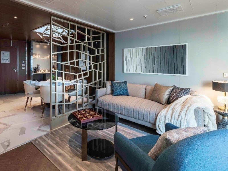 Accommodation categories include 36 suites, 374 mini suites, 1,028 balcony staterooms and 342 inside cabins. The total accommodation capacity of the ship is approximately 6,021 passengers, including crew.