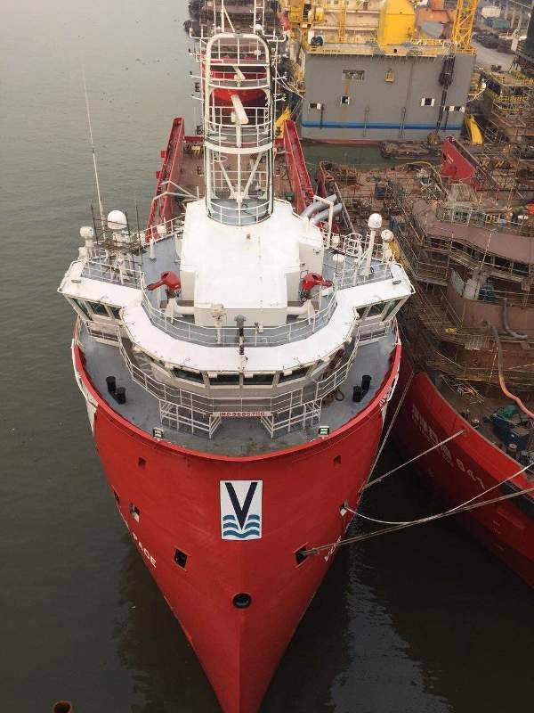 VOS Pace is a new platform supply vessel (PSV) built for the Dutch company, Vroon Offshore Services. The vessel, built at the Cosco Guangdong Shipyard in China, was launched in June 2014 and delivered to her owners in February 2015.